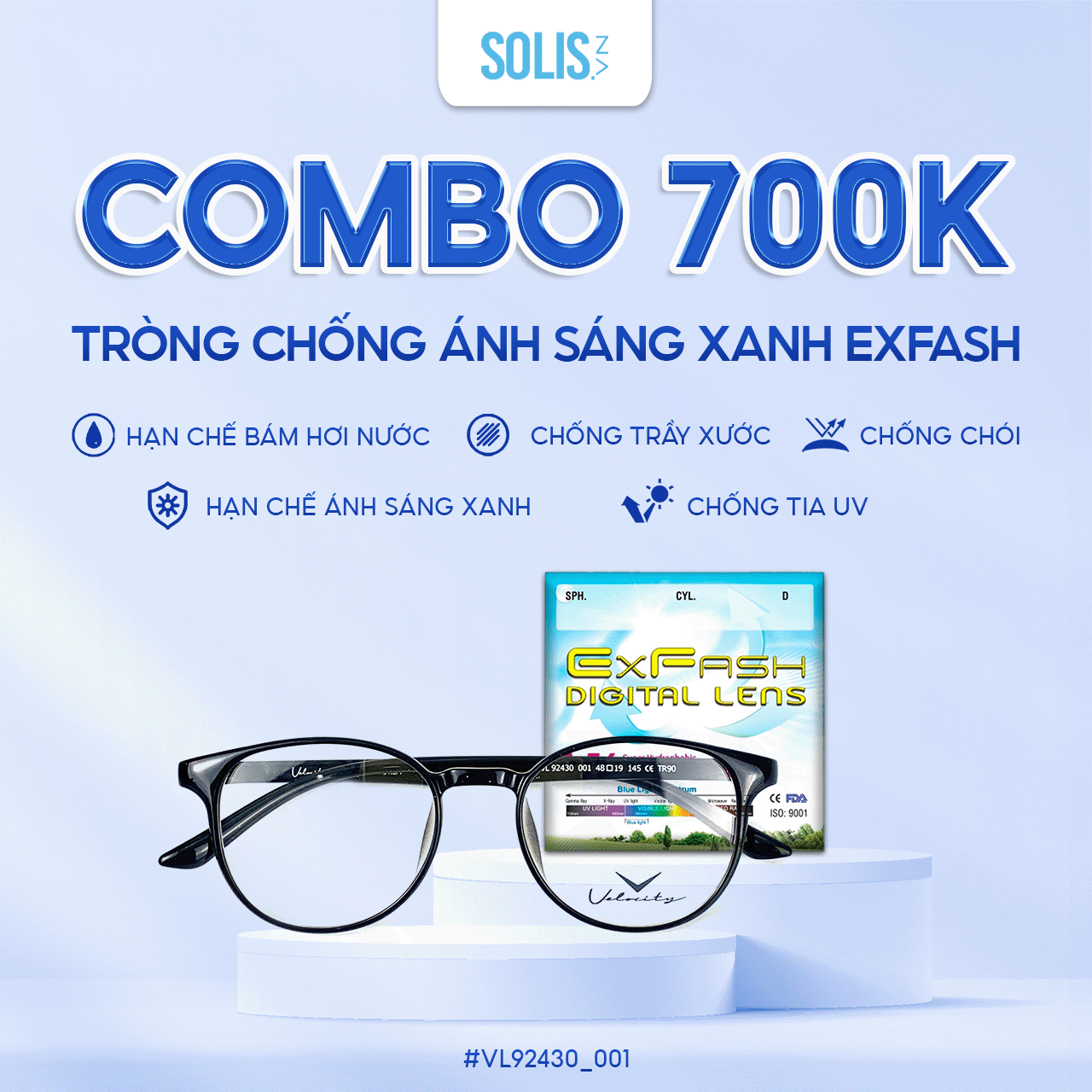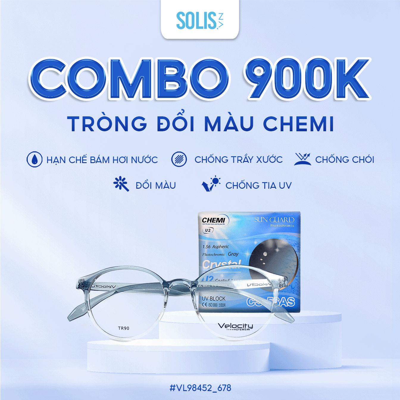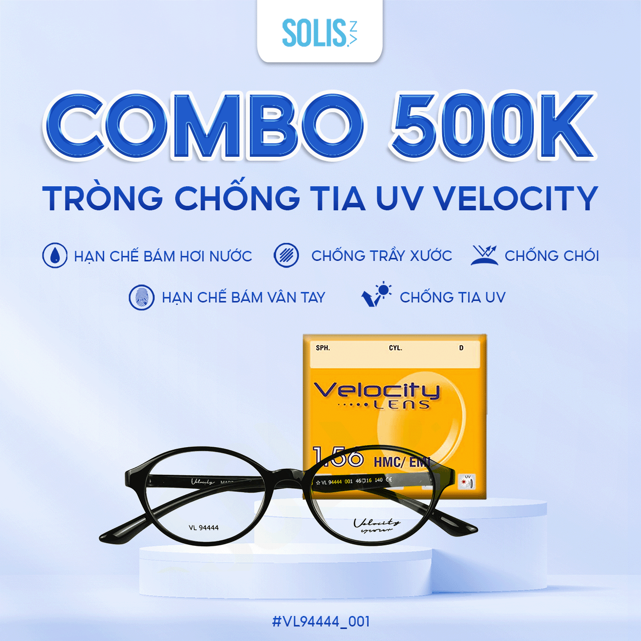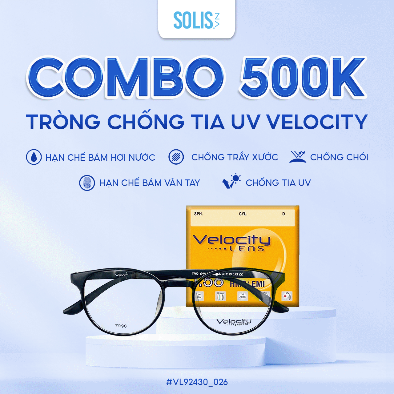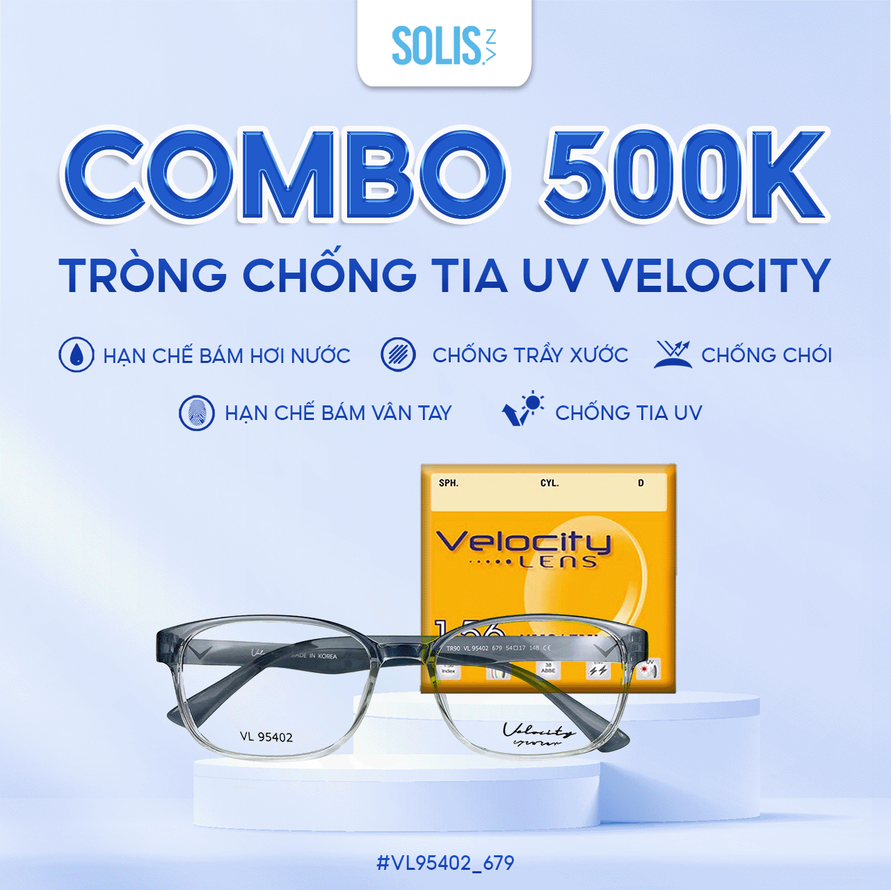 Combo 500K: Tròng Velocity chống chói – chống UV giúp nhìn rõ hơn, hạn chế lóa khi ra ngoài trời và bảo vệ mắt hằng ngày.