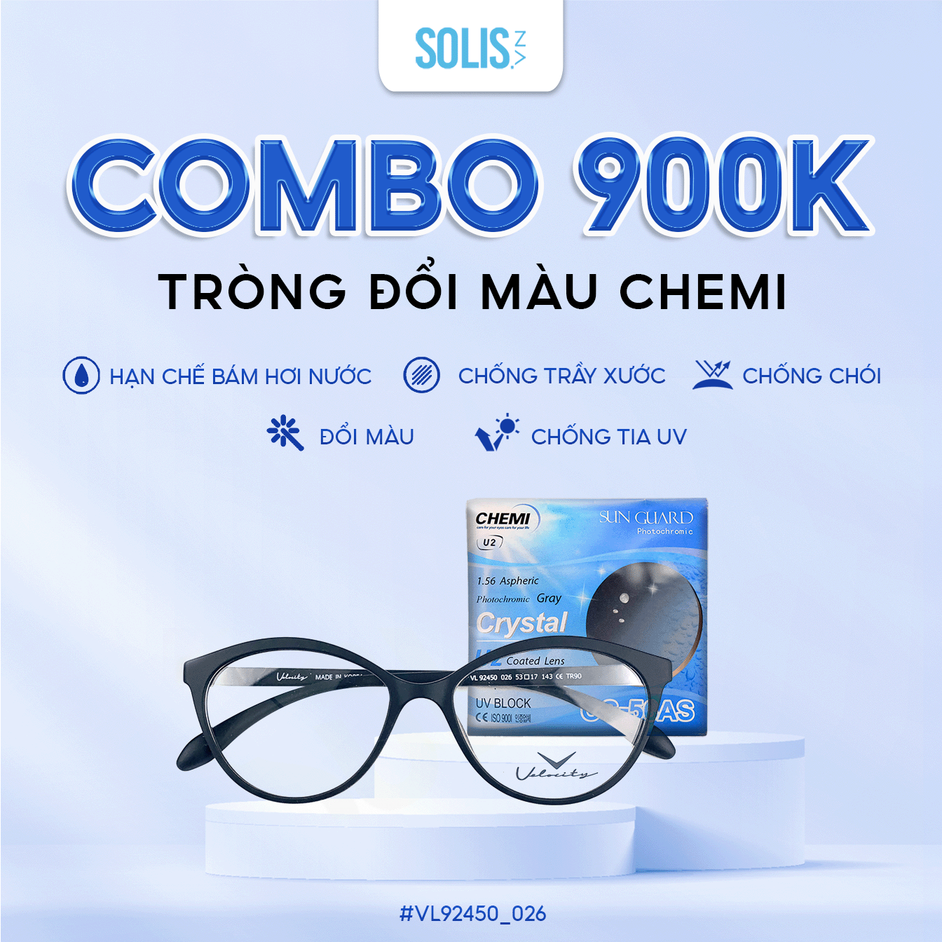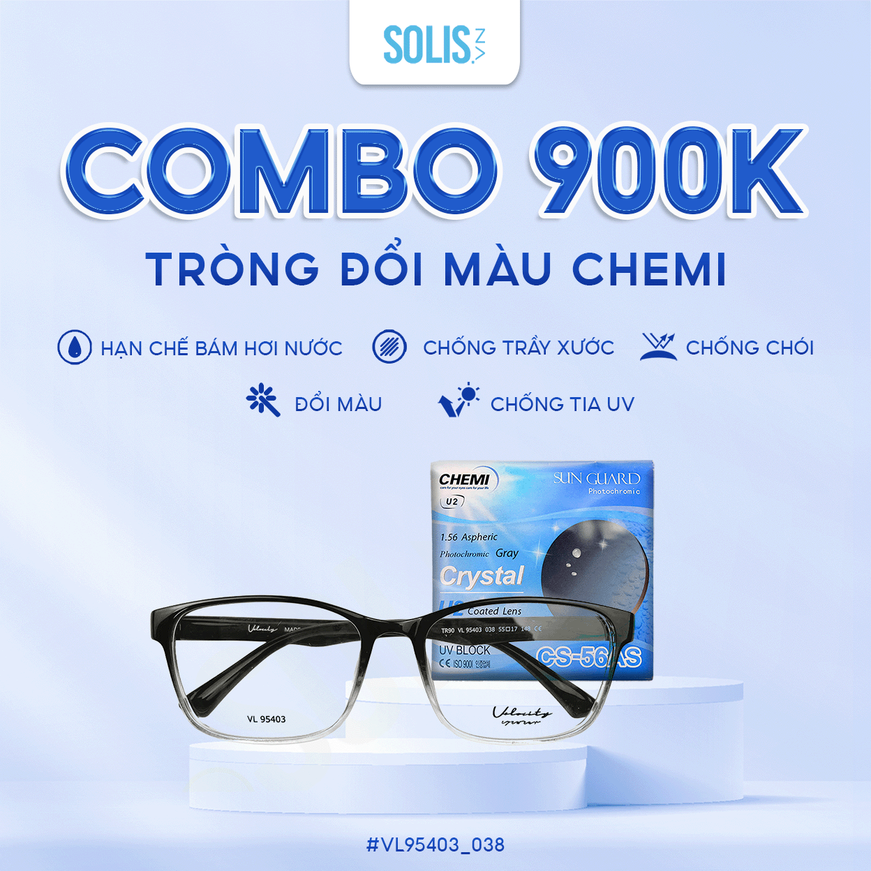 Combo 900K: Tròng đổi màu Chemi tự động chuyển màu khi ra nắng, tiện lợi khi di chuyển ngoài trời.