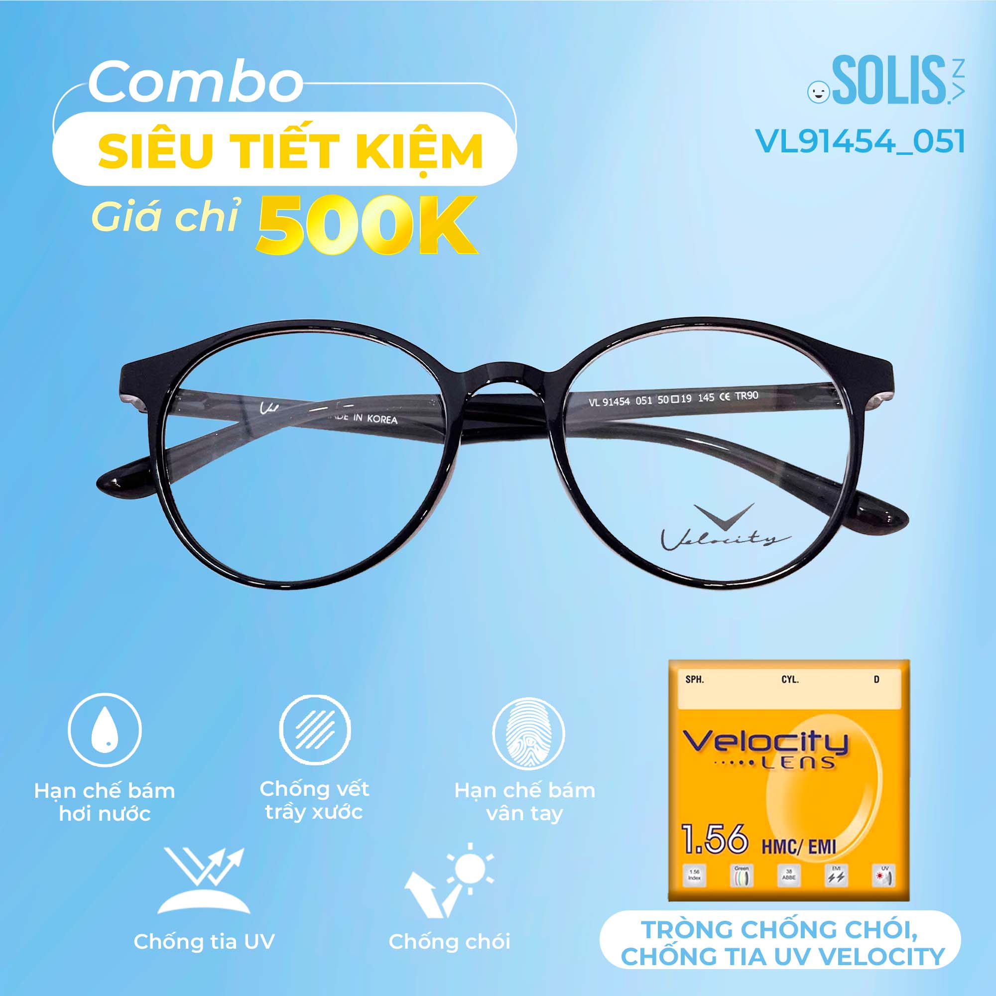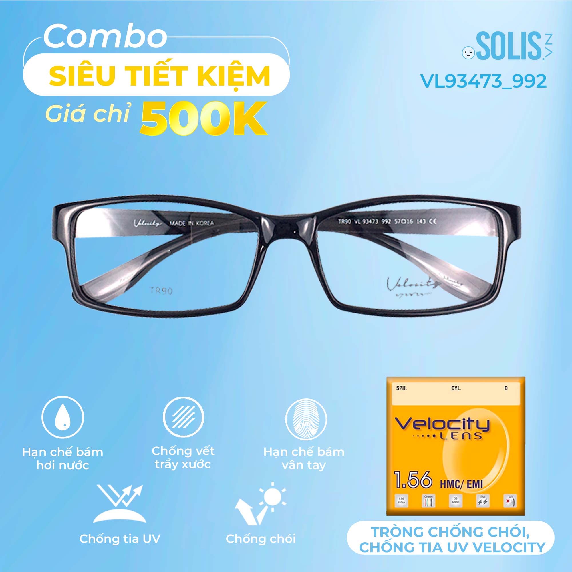✨ Combo 500K: Tròng chống chói, chống tia UV Velocity + Gọng kính nhựa Velocity