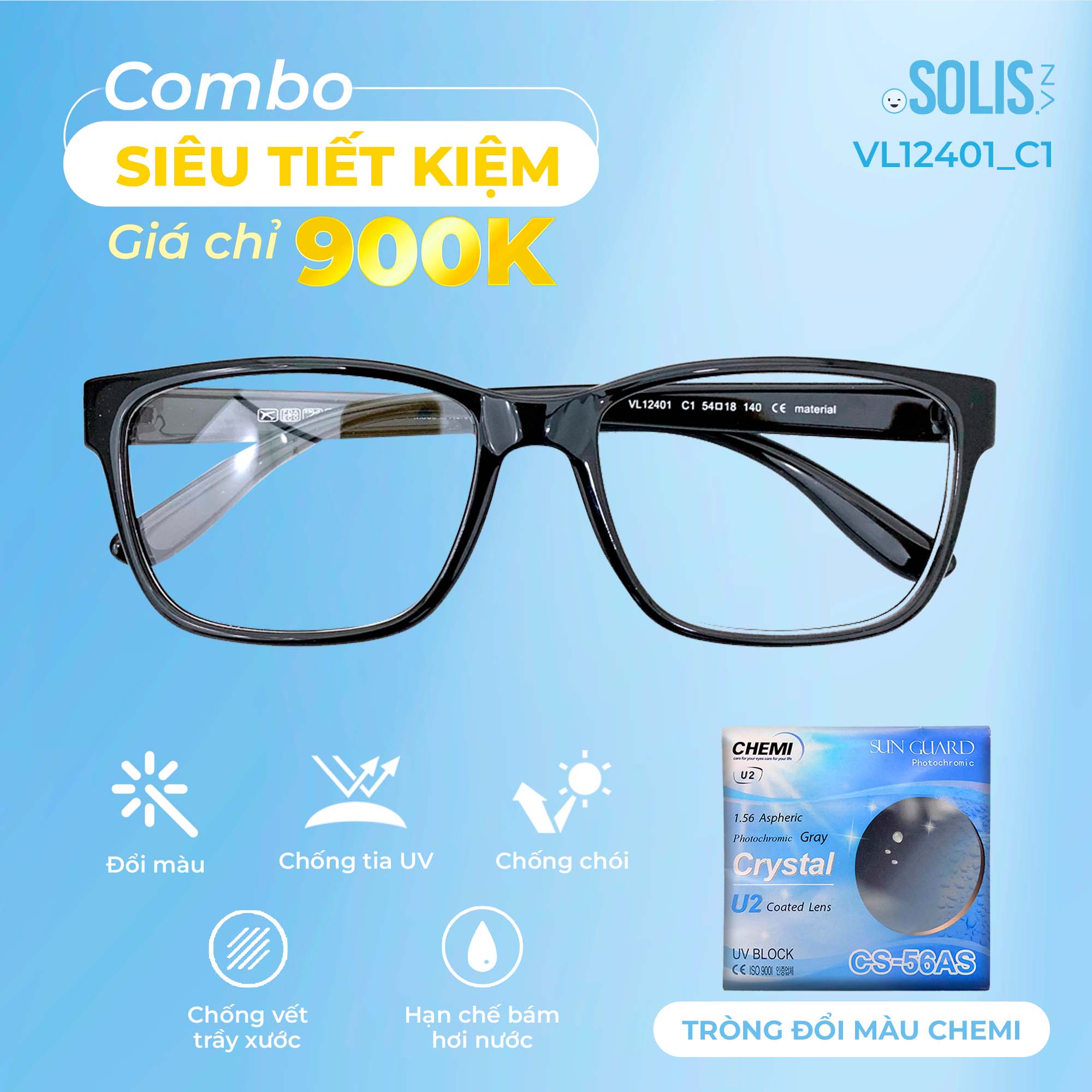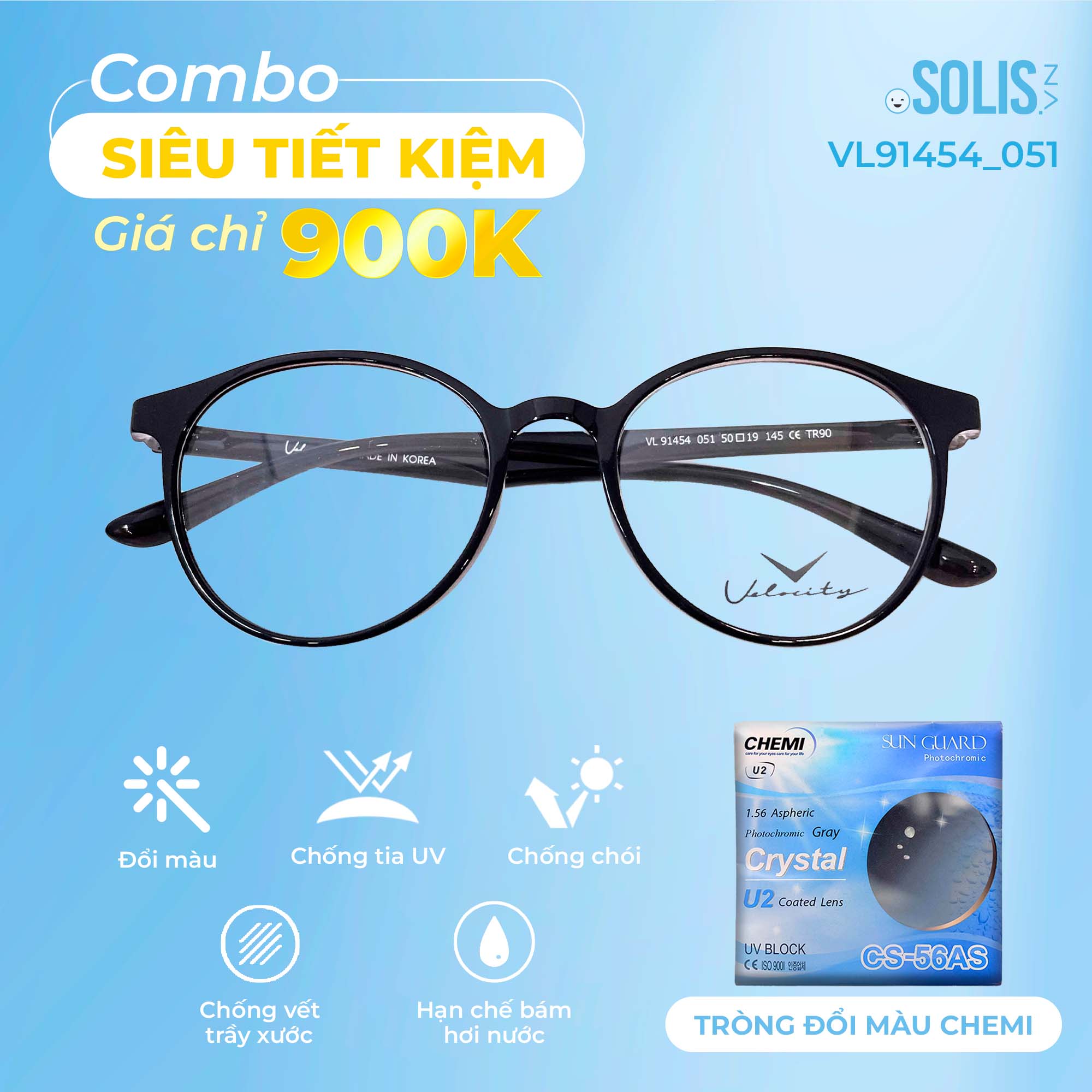 ✨ Combo 900K: Tròng đổi màu Chemi + Gọng kính nhựa Velocity